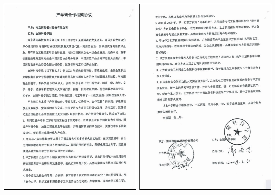 基地与南京市消防器材股份有限公司建立了长期稳定的合作伙伴关系,双方签署了多项合作协议,包括产学研合作框架协议、校外实习基地协议书等,共同推动了“江苏省消防工程技术研究中心”的建设与发展。自2008年起,校企双方在技术研发、课程建设、师资培训等方面展开了深入合作,取得了显著成效。例如,基地多名专业教师被聘为公司国家火灾中心高级工程师,共同开展了细水雾等项目的研发,获得了多项国家专利,极大地提升了双方的科研实力。
