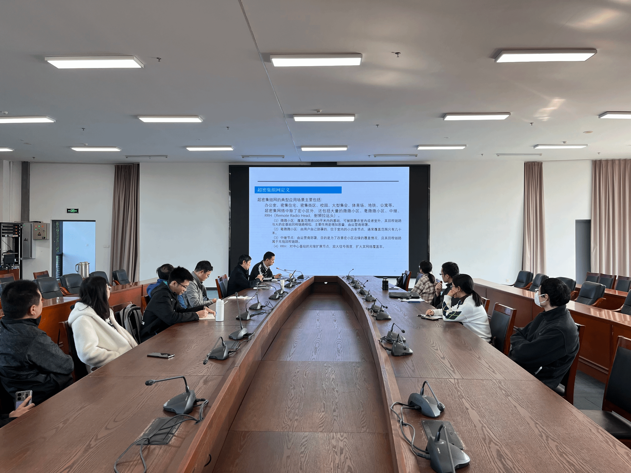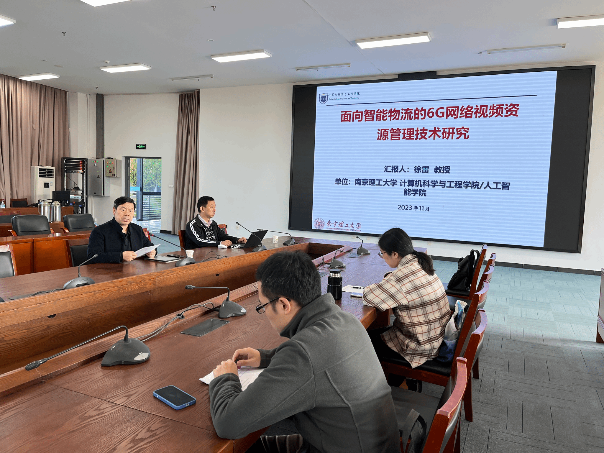 徐雷教授首先介绍了6G网络视频资源管理技术在我国快递服务业的重要性,该技术能够保障快递服务业的有序健康发展、提高服务质量以及提升快递网点的运营效率。其次从“异构NOMA网络模型”、“视频业务的资源分配与调度问题”、“视频业务的资源分配与调度算法”和“性能仿真”等方面讲授了他在6G网络视频资源管理技术的最新研究成果。重点讲解了超密集组网关键技术、MEC框架设计、计算量重分配与任务迁移、6G边缘计算关键技术、动态频谱共享实现技术等专业技术内容。最后徐教授与参会师生进行了深入交流,介绍了我国6G技术的发展形势以及课题组最新研究进展,同时表达了对学校及学院的美好祝愿。