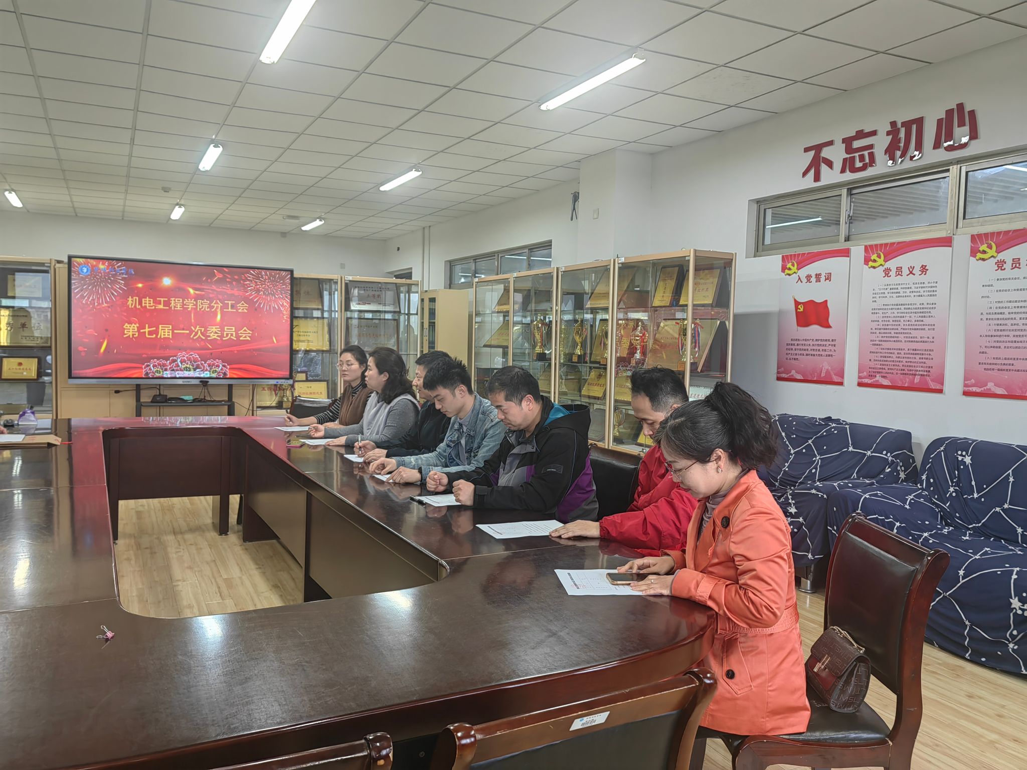 随即,七位当选委员召开了机电学院第七届一次委员会全体会议,会议决定推选张玉同志担任机电学院分工会主席,兼任民主管理委员;凌秀军同志担任机电学院分工会组织宣传委员;徐雷同志担任机电学院分工会财务委员;张蛟同志担任机电学院分工会生活福利委员;林坡同志担任机电学院分工会文体委员;姜劲同志担任机电学院分工会青年委员;杭阿芳同志担任机电学院分工会女工委员。