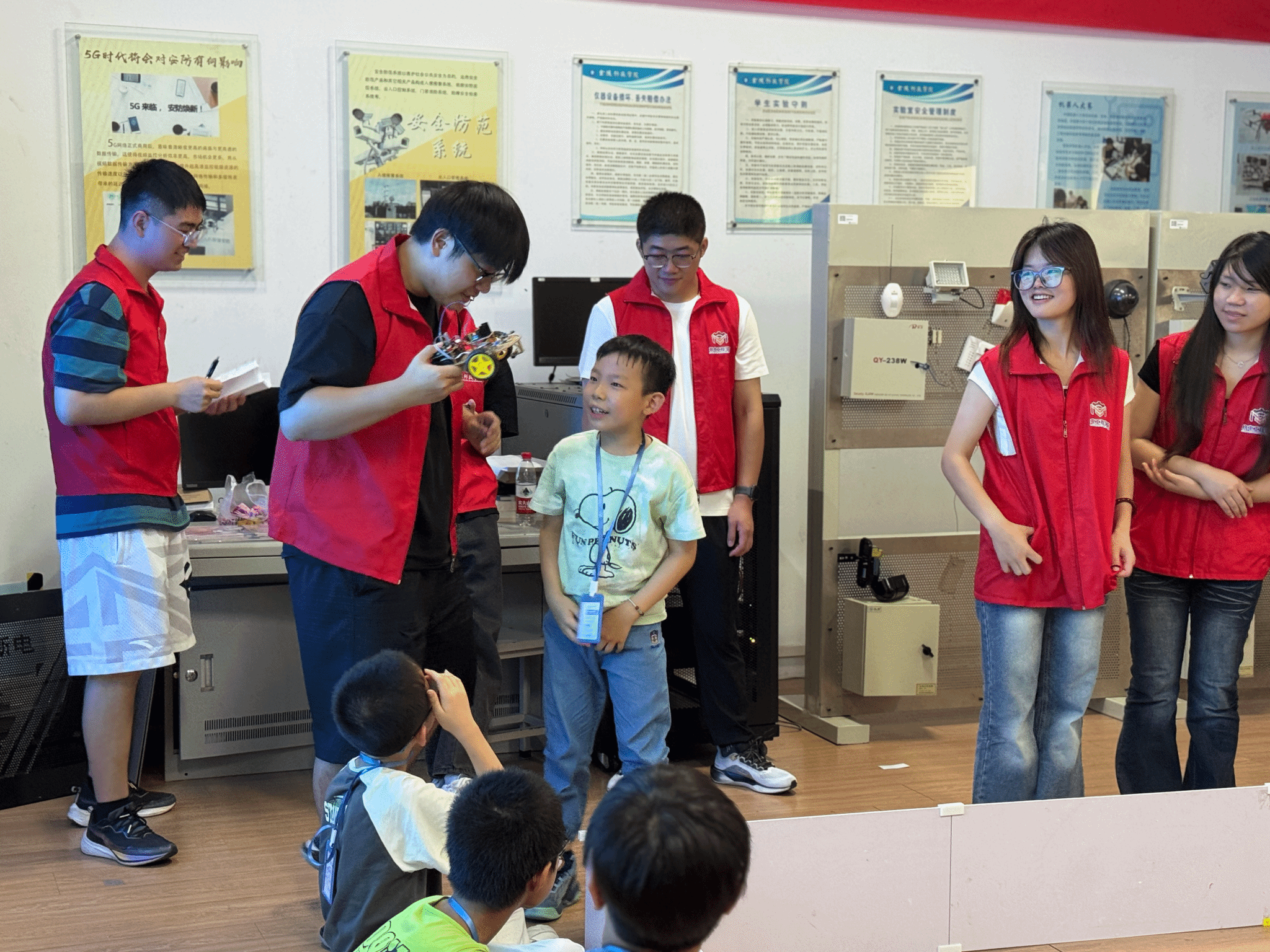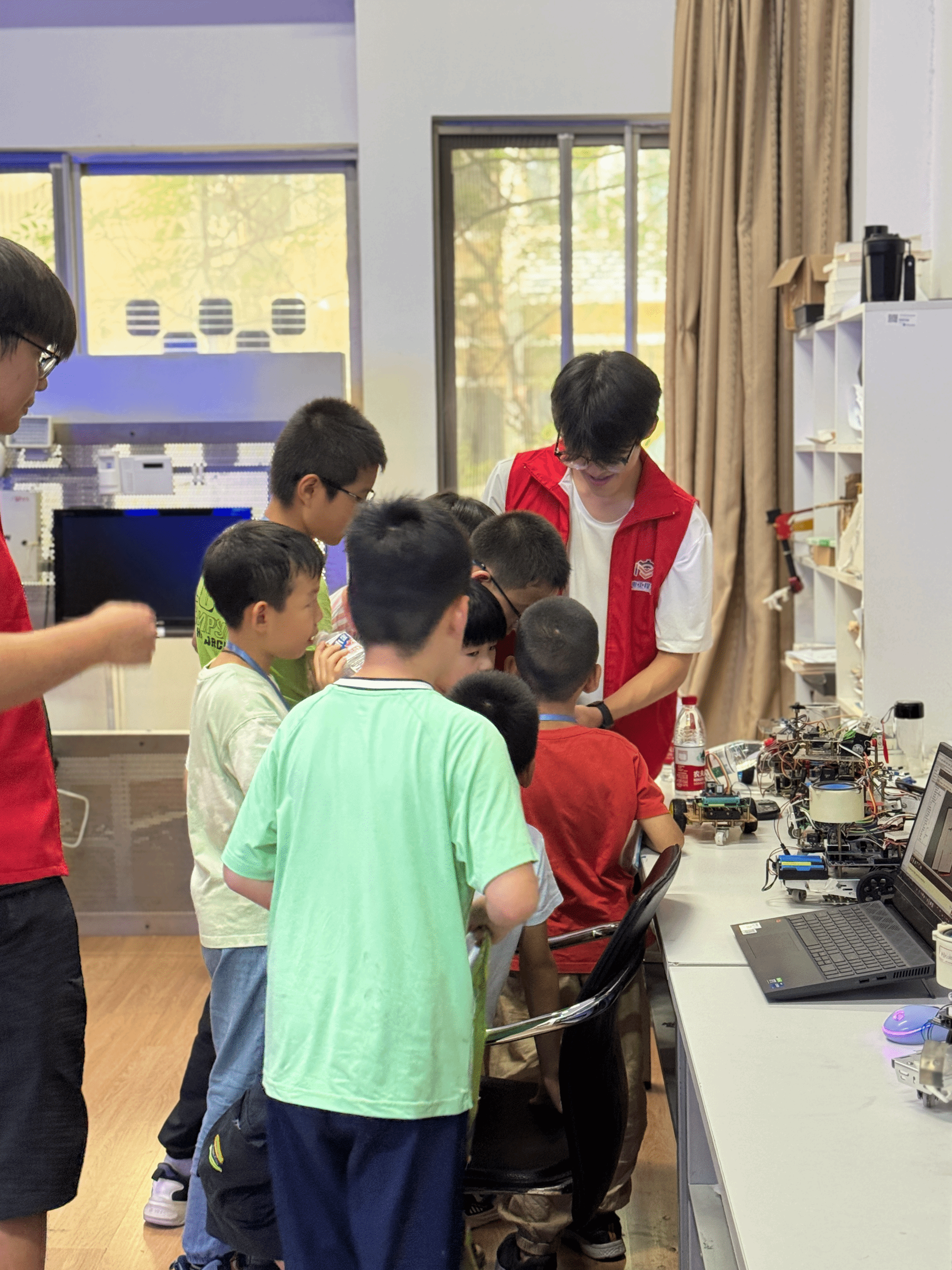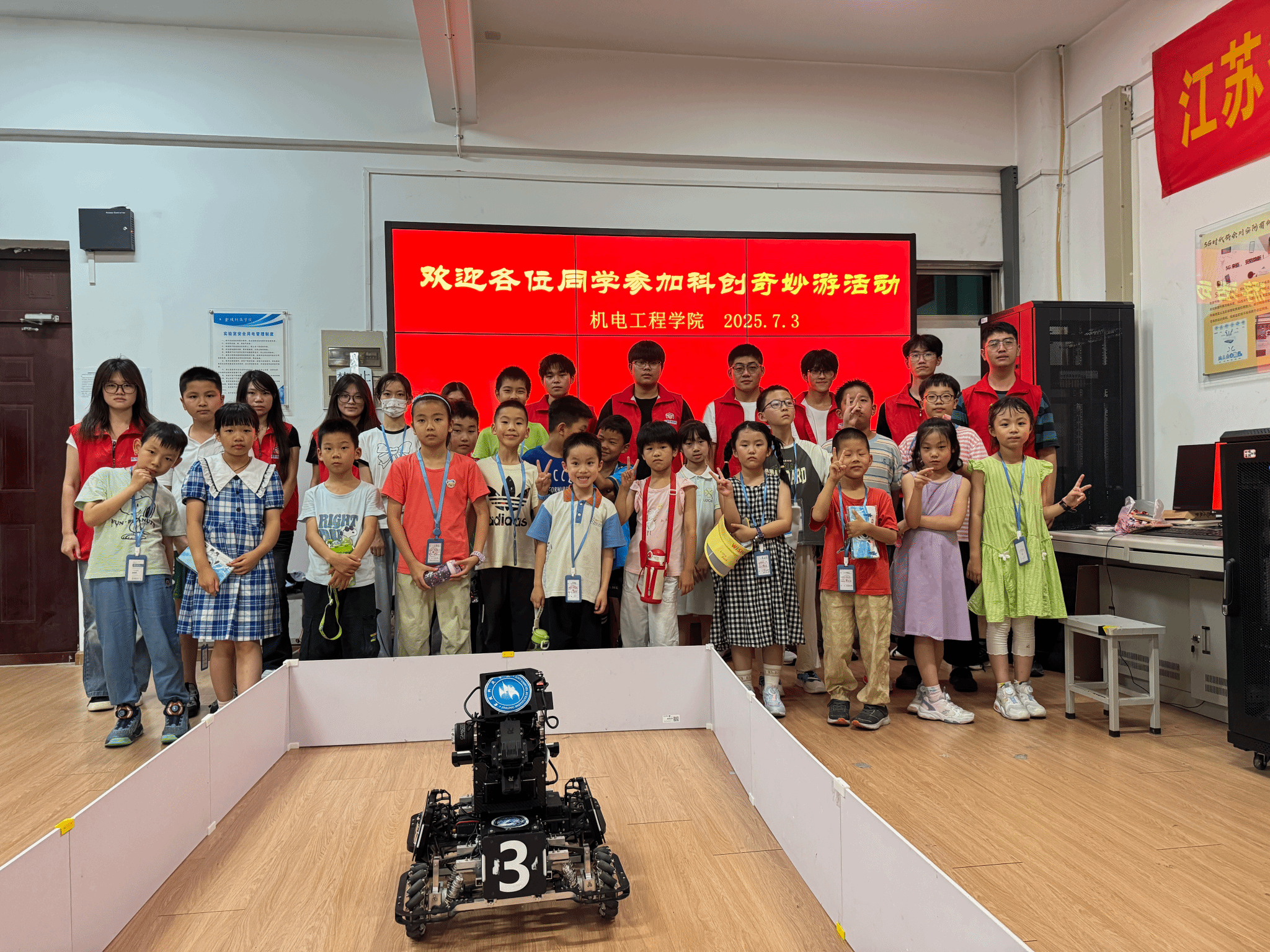 为配合落实校工会主办的金科暑期爱心托管活动,在学院党委和全体教工的关心支持下,机电分工会于2025年7月1日、7月3日分2批次组织开展托管活动。我院承办了“科创奇妙游”项目。本次托管活动为教工子女带来沉浸式科技体验——科创团队成员将带领孩子走进实验室,体验嵌入式、ROS等技术的实际应用,参观智能硬件、机器人等核心项目成果,同时分享科创竞赛经验与学习心得,激发孩子们对科技的探索热情。活动内容设计精心,安排动静结合,组织安全有序,赢得了全校教职工的充分信任和肯定,同时也深受孩子们的喜爱。学校“服务+教育+互助”模式的暑期爱心托管活动不仅是“为教职工办实事”的暖心实践,更是用爱与智慧为孩子们编织起的成长摇篮。