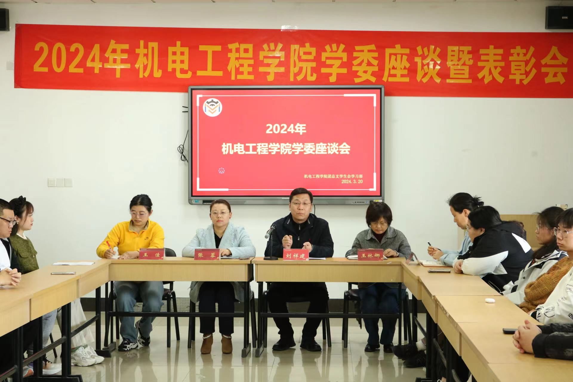 座谈会伊始,学院副书记张蓉对过去一年学习委员工作给予肯定,并对今年的学风建设工作提出希望。鼓励学委知责于心、担责于身、履责于行,在学委工作中锻炼能力、提升素养,进而推动学院学风建设不断发展,响应学校高水平迎评促建的号召。接着,副院长刘祥建寄语各位学委,要珍惜宝贵的学生干部经历,通过上传下达的过程培养耐心和细节基本素养,为将来走向工作岗位打下良好的基础。之后,学院教务管理科科长王林娜老师则强调了学委在工作中需要明确责任、抓落实、正向引导的重要性。辅导员王佳明确了学委考评要求和激励政策,鼓励学委比优争先、永争上游。
