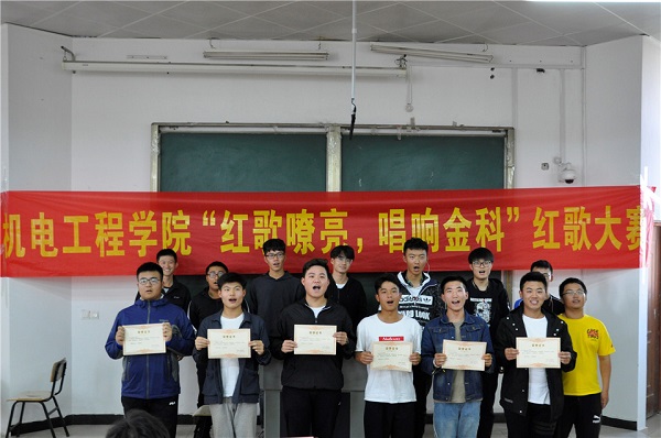 一首红歌一面旗,一支红曲一把号。近期,机电学院在教学楼8300教室举办“红歌嘹亮,唱响金科”红歌演唱比赛。本次比赛以班级为单位,以红歌比赛的方式歌颂祖国,唤起红色记忆,唱响爱国主旋律。
