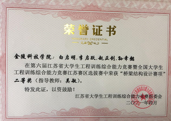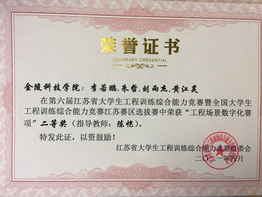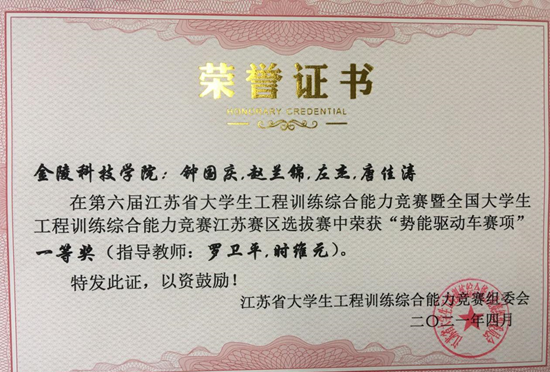 2021年4月23日至25日,由江苏省教育厅主办的第七届江苏省大学生工程训练综合能力竞赛暨全国选拔赛在南京举行,来自全省39所高校的349支代表队、1700余名师生共赴创新盛宴,在竞技中碰撞思维、展示风采。我院代表队共获得一等奖2项,二等奖5项的好成绩。