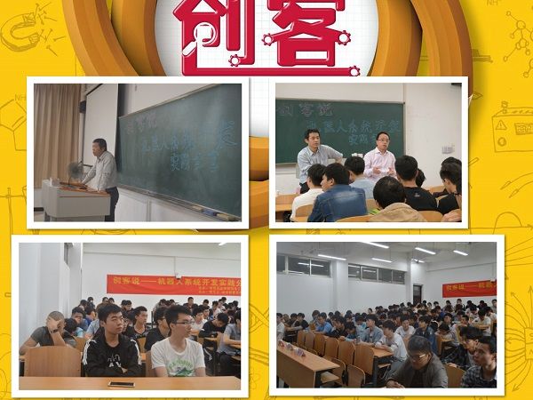 为鼓励学生开拓创新、培养学生的创新思维能力和实践能力,WilliamHill中文于4月21日上午10点在3202开展了机器人系统开发实践讲座。此次讲座特邀中国创客空间联盟理事长郑岩峰、南京百邻悦科技服务有限公司总经理吉星和WilliamHill中文实验中心主任周洪老师。我院近百名机器人爱好者聆听了本次“创客说”讲座。