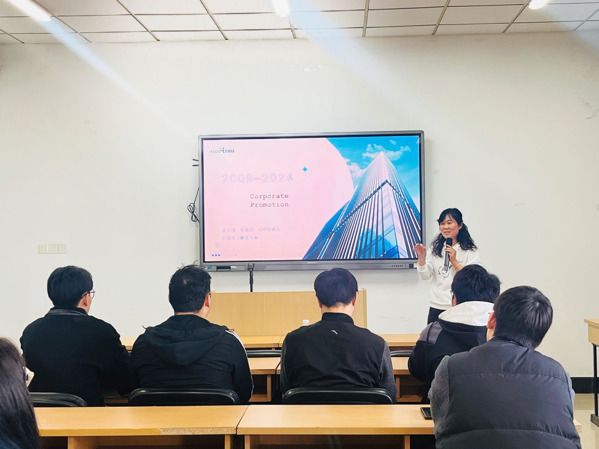宣讲会上,南京华助自动化技术有限公司人力资源部主管向毕业生详细介绍了企业的发展历程、创新成果和未来发展规划、人才招聘、晋升机制以及薪酬福利待遇等内容,解读了自动化技术在工业生产、智能制造等领域的应用,并介绍了企业的核心产品及技术优势。与此同时,也分享了自己在技术研发和项目实践中的心得体会,为在场学生提供了宝贵的学习和职业发展建议。最后,在与学生的互动交流环节中,企业人力资源部主管就招聘岗位及要求进行了详细介绍,有意向的学生现场提交简历,参与后续的面试和招聘流程。