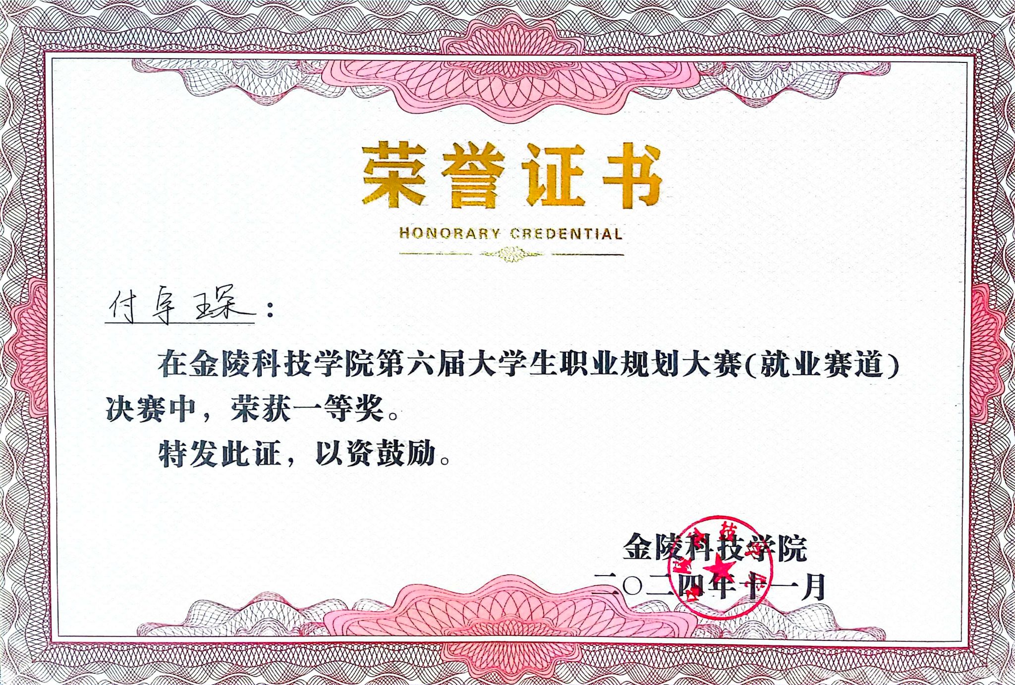 11月27日下午,我校在江宁校区科技楼报告厅举办“筑梦青春志在四方,规划启航职引未来”第六届大学生职业规划大赛校级决赛,我院付宇琛同学荣获就业赛道一等奖。