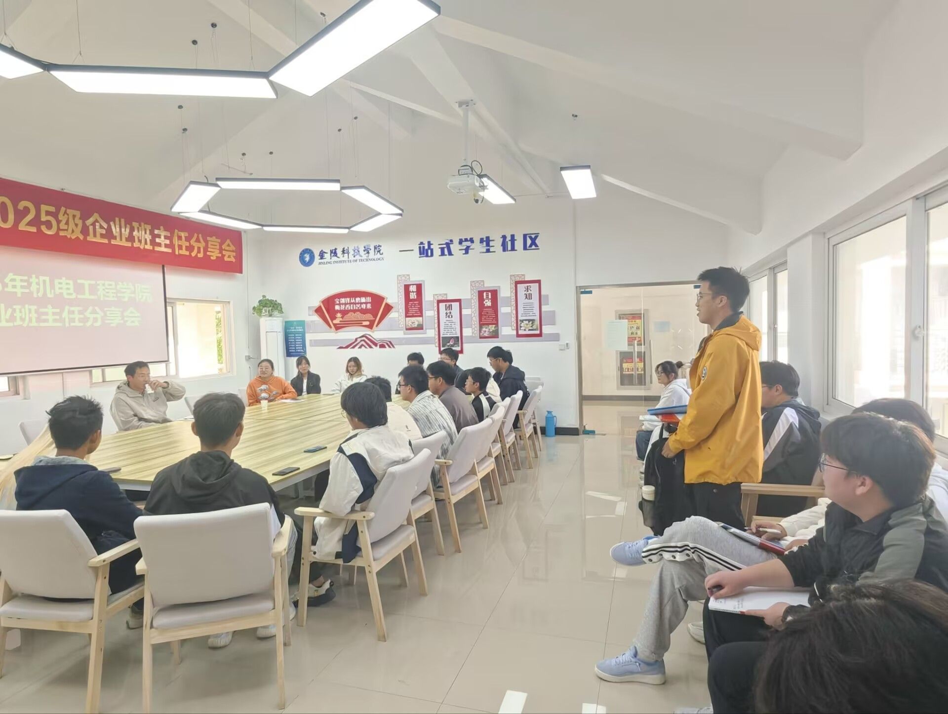 为促进学生成长成才,加强企业班主任与学生的联系、助力学生职业发展,11月12日下午,我院在南01学生一站式社区举办2025级企业班主任分享会。活动邀请2025级电气工程及其自动化班企业班主任、2018届优秀校友余冠廷返校分享。院党委书记沈瑾、院长周金宇、学工办副主任李梅、辅导员王东红、辅导员王佳、2025级电气工程及其自动化(2)班全体新生共同参会。