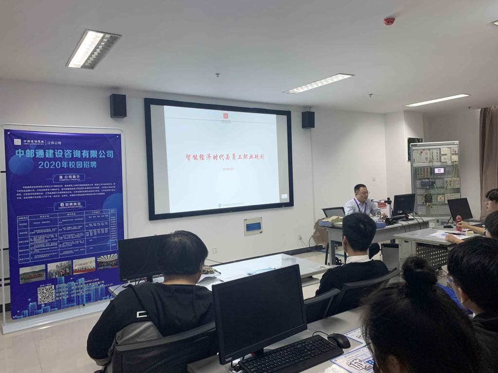 中邮通建设咨询有限公司是中国通信服务公司旗下的专业监理公司,公司注册资本1.1亿元,是中国通信服务公司监理专业委员会主任委员,江苏省文明单位,江苏省示范监理企业。讲座结束后,中邮通建设咨询有限公司举行了专场招聘宣讲会,同学们踊跃投递简历,公司现场开展第一轮面试,36名学生成功入围第二轮复试。