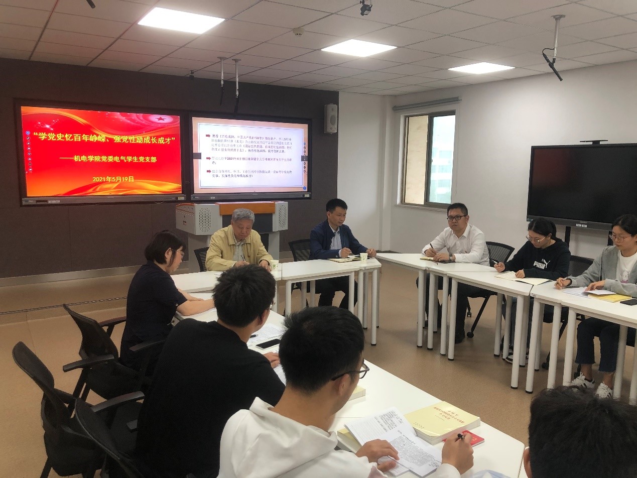 会上,刘利娟汇报了电气学生党支部开展党史学习教育的情况,带领支部党员学习了习近平总书记近期重要讲话和指示批示精神,观看了《百炼成钢:中国共产党的100年》微纪录片。电气学生党支部党员围绕“学党史,办实事”主题,联系自身实际,从班级班风建设、安全稳定、疫情防控、学风建设、志愿帮扶、就业、科技创新等方面,就如何发挥党员先锋模范作用进行了交流发言。