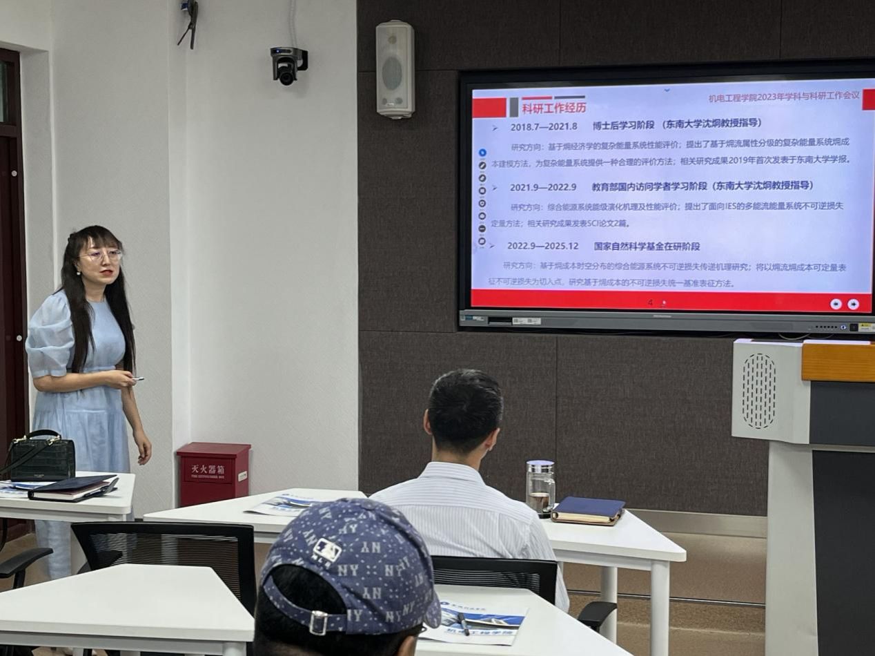 机械工程学科负责人鞠全勇、电气工程学科负责人张静、绿色智能建筑学科负责人牟淑志分别对各自学科的建设举措、取得成绩和发展思路进行总结。科研骨干代表李超越、刘莎、姜劲从项目课题申报、论文专利撰写、科技成果转化等方面向参会人员分享经验。